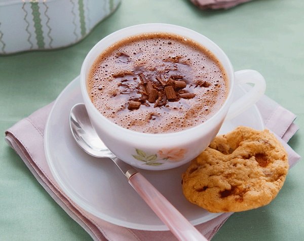 - نذيب الشوكولا ببخار الماء المغلي ونوزعها على 6 أكواب . نسخن الحليب والكريمة والسكر حتى الغليان ونسكبها في أكواب الشوكولاته المذابة، ثم نحرك جيداً . نزين الكوب بقطع الشوكولاته ونقدمه مع كوكيز العسل اللذيذة والمقرمشة .