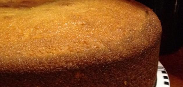 - أخرج الكيك من الفرن، ثمّ اقلبه مباشرة على طبق للتقديم، ودع القالب على الكيك لمدّة 5 دقائق ثمّ إرفعه.