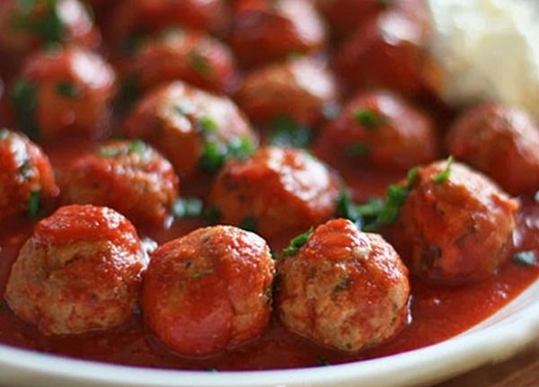 - ضعي الطماطم، والبقدونس المجفف والماء. اطبخيهم حتى تنضج الطماطم، حوالي 5 دقائق. اسكبي صوص الطماطم فوق كرات اللحم وقدميها.