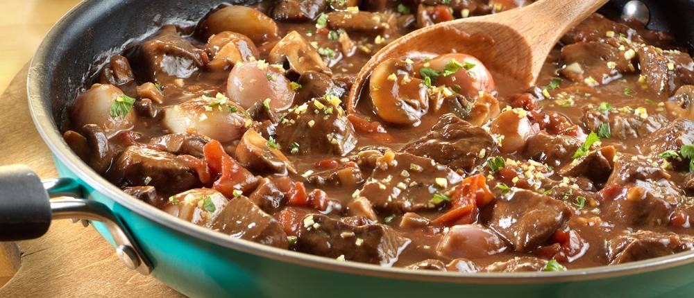 - ضعي اللحم في المقلاة مرة اخرى ثم اخفضي الحرارة و غطي المقلاة و اتركي المزيج حتى ينضج.