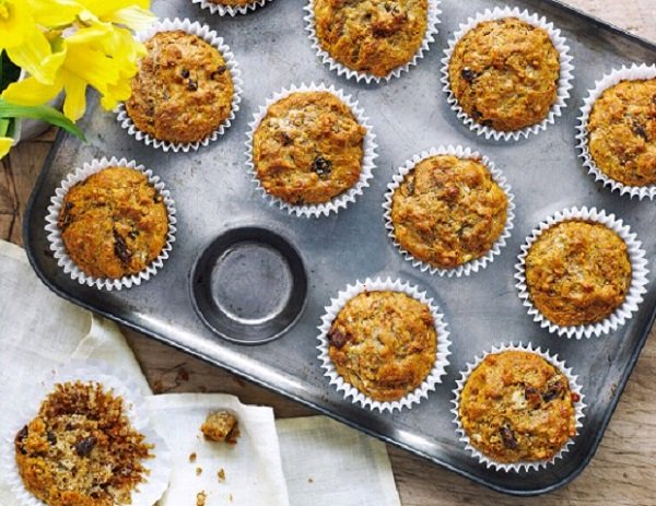 - نوزع المزيج بالتساوي على فتحات قالب المافنز ونرش الشوفان على كلٍّ منها . نخبز المافنز في الفرن لمدة 25-30 دقيقة حتى تكتسب لوناً ذهبياً .
