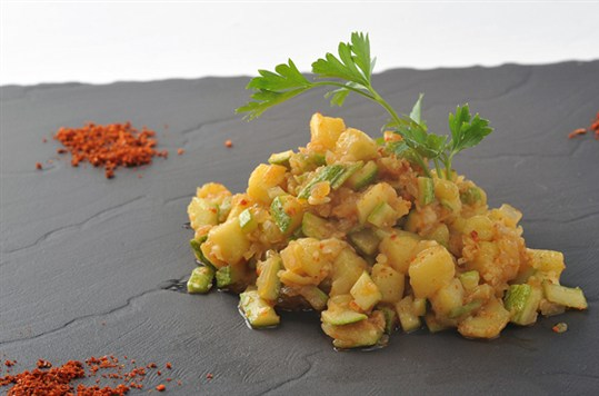 تقدم باردة وتزين بالفلفل الأحمر الحلبي .