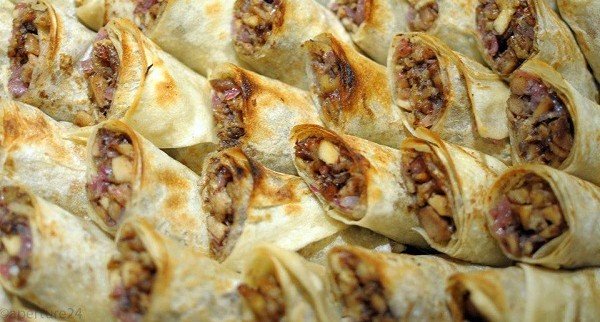 ونكمل بنفس الطريقة حتى الانتهاء من الحشوة و خبز الشراك .