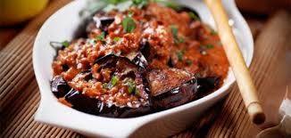 - نشوي الباذنجان في فرن سخن حرارة ٢٠٠ (٤٠٠ ف) لمدة ساعة و نسيبها تهدى على جنب.