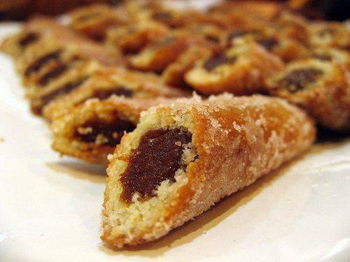 - ثم نحمي الزيت جيدا وتقلى بسرعه ثم تصفى وتزين بالسكر الناعم ثم تقطع من الوسط وتصف في طبق التقديم .