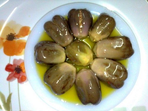 - من الافضل ازالة الراس الاخضر بالنسبه للمكدوس لان هذا يحد من التعفن ويقلل من الزيت الممتص