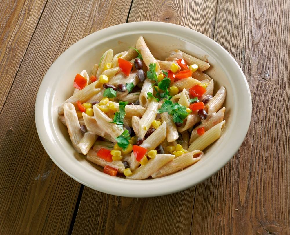 تحضير المكرونة مع الذرة والفاصوليا الحمراء