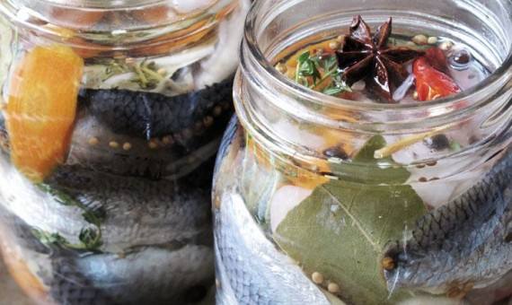 4. ونضع معه شطة حتى لا تدود، ونقوم بغلق الكيس جيدا، ثم نغلق الجردل بإحكام، وبعد أسبوع يتم قلب السمك في الجردل، ونرصه من جديد، بحيث يهبط السمك الذي كان في أعلى الجردل إلى أسفله، ثم نتركها حتى تستوي، وبعدها يتم أكلها.