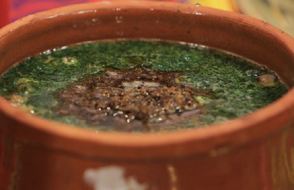 - – تفرم الملوخية في الخلاط ثم توضع في مرق الدجاج على النار،وتتبل بالبهارات والبصل، والفلفل الأسود حتى تغلي