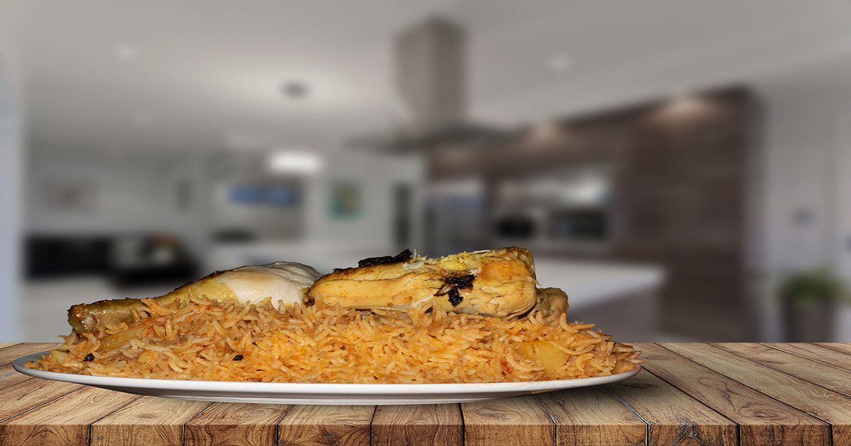 9- اسكبي الأرز في طبق التقديم. أضيفي قطع الدجاج على الوجه وقدّمي الطبق ساخناً.