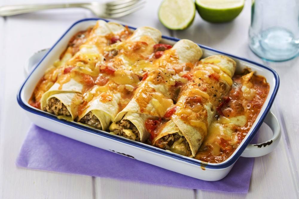 - قدمي انشلادا اللحم بالزيتون المكسيكية مع صوص الإنشيلادا المكسيكي الحار.