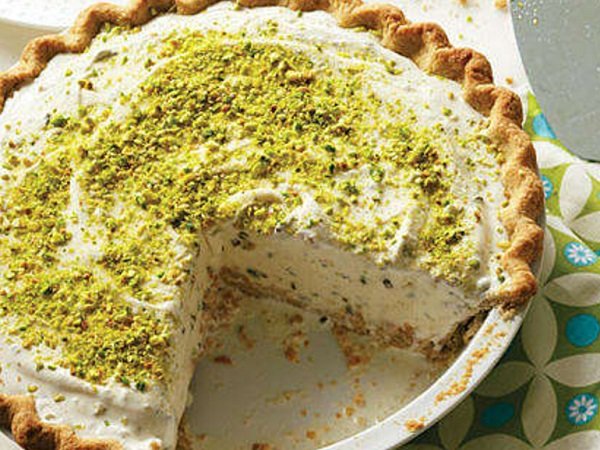 ايس كريم بالفستق ، طري على الطريقة الهندية ، منكه بالفستق الحلبي والهال واللذان يمنحان طعماً رائعاً ومنعشاً لكل وصفة يضافان إليها.و ييم اعداده في هذه الوصفة على شكل فطيرة بعجينة هشة .