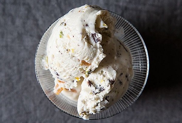 - جمدي المزيج في آلة الآيس كريم، أضيفي قشور الحمضيات، الشوكولاتة والفستق الحلبي في النهاية، اخلطيهم حتى يتحدوا.