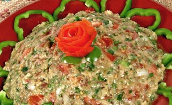 يوضع الباذنجان في قدر للشوي مع الطماطم والبصل والفلفل الأحمر، وبعض من قطرات زيت الزيتون والملح والفلفل.