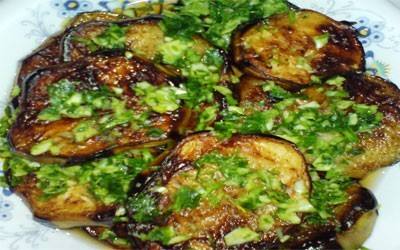 - نغسل الباذنجان ونقشر بالسكين الطبقه السوداء بالطول واحدة ونترك واحدة ونقطعه دوائر متوسطة السمك. ونرش عليه ملح ونتركه حوالي ثلث ساعة ونغسله .