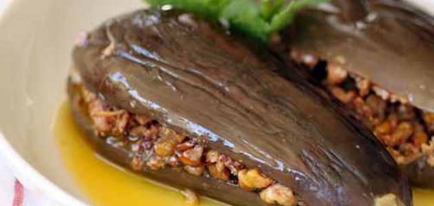 - يوضع الباذنجان في طبق، ثمّ يوضع في الثلاجة حتى يبرد ويتشرّب نكهة الحشوة.