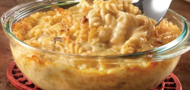- نضع خليط الدجاج والباستا في صينية بايركس، وندخلها إلى الفرن لمدّة عشر دقائق حتّى تتحمّر، وتقدّم ساخنة.