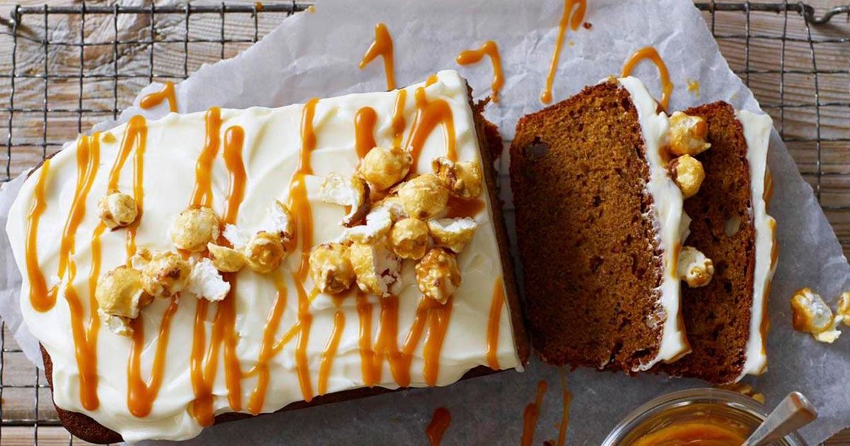 7- زيني الكيك البارد بمزيج الكريمة وزيّنيه بالفشار وباقي كمية صلصة الكراميل.