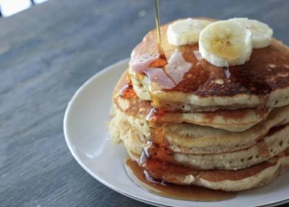 - توضع قطع البان كيك في طبق التقديم وتزين بقطع الموز والعسل.
