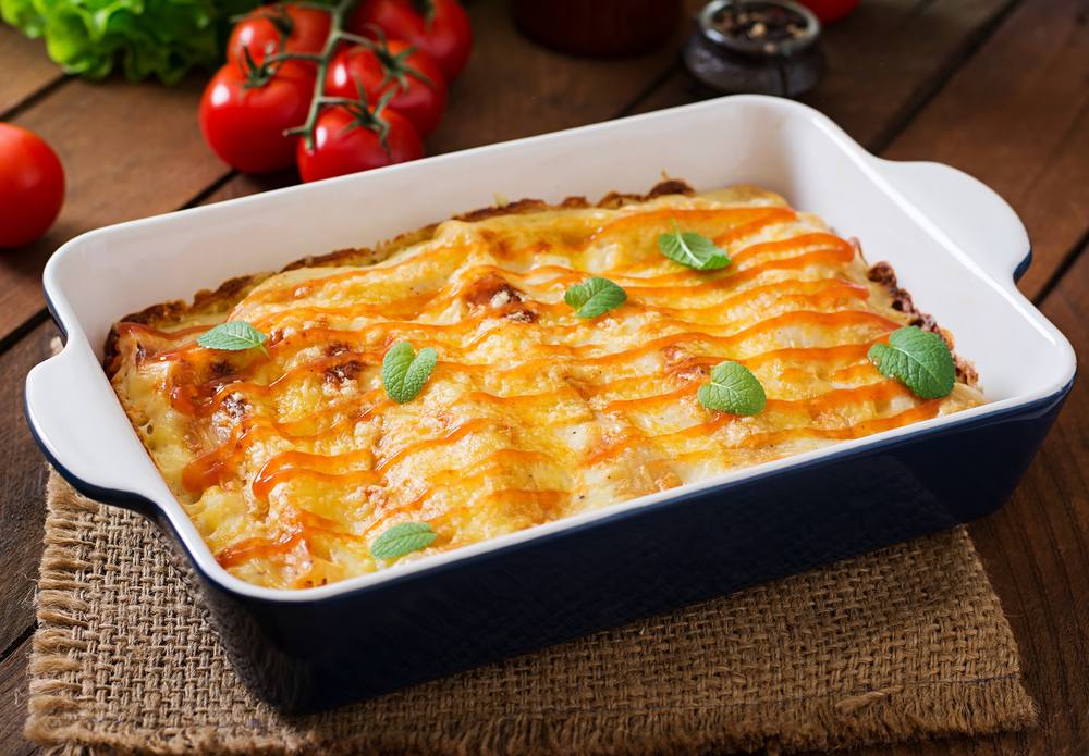 4. تقلب الريكوتا مع البيض و1 ملعقة كبيرة من جبن البارميزان في طبق ويتبل بالفلفل وينثر علي خليط الصلصة و يملس السطح و ينثر عليه باقي البارميزان و جبن الموتزاريلا و يُخبز في الفرن لمدة 25 إلى 30 دقيقة حتى يصبح ذهبياً .