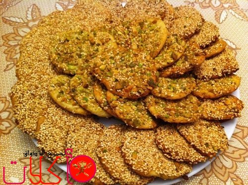 نأخذ كرة من العجينة ونغطسها في بياض البيض الى أن يتغطى نصفها تقريبا ثم ننقلها لطبق السمسم بحيث يكون الجزء المغطى بببياض البيض هو الذي في السمسم ونضغط عليها بخفة بباطن الكف حتى تتغطى بالسمسم وفي نفس الوقت تصبح مثل القرص الذي مقاسة حوالي 5 سم