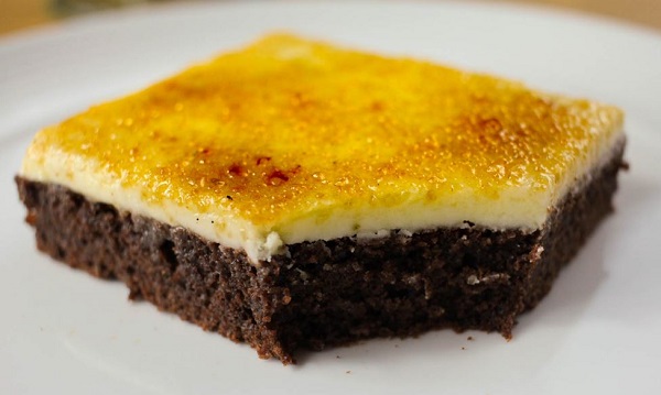 براونيز الكريم بروليه حلى مميز يجمع بين البراونيز التي نعشق مذاقها بالإضافة للكريم بروليه اللذيذ بطريقة سهلة وسريعة وشكل شهي .