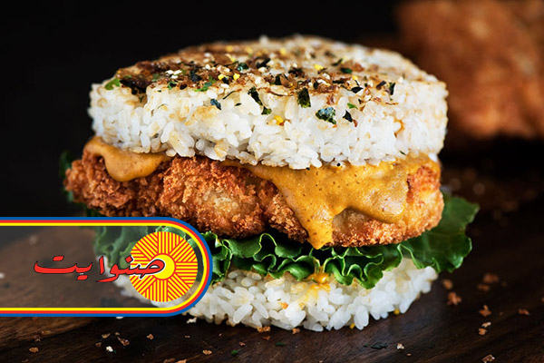 برجر الارز من المطبخ الصيني ، من المعروف أن البرجر هو عبارة عن قطعتَي خبز محشوة بشرائح اللحم والخس والطماطم ومختلف أنواع الصلصات، إلا أن وصفة البرجر الصيني بالأرز تختلف تماماً فهي عبارة عن برجر مصنوع من الأرز بدل الخبز ومحشو بالدجاج المقلي المقرمش وصلصة مميزة بتوابل شهية، لنجاح هذه الوصفة لابد من اختيار صنف معين من الأرز ،لذلك ينصح شيف طريقة بارز صنوايت™كالروز متوسط الحبة لأنه سهل التماسك و يمكن تشكيله باليد للحصول على قطع الأرز البديلة للخبز لتحضير البرجر .