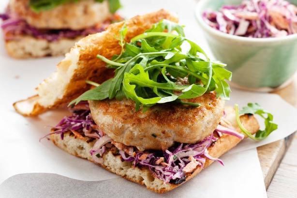 إقتراحات لبرجر الدجاج المشوى مع سلطة الكرنب الأحمر