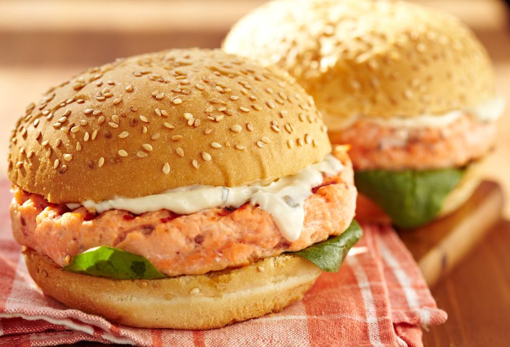 إقتراحات للسندوتشات برجر السبانخ والسلمون مع سلطة الزبادي