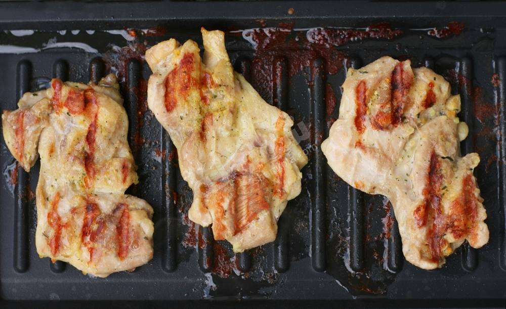 - 8 فخذ دجاج مخلي بدون جلد و يدق جيداً (حوالي 100 جرام لكل منهم)