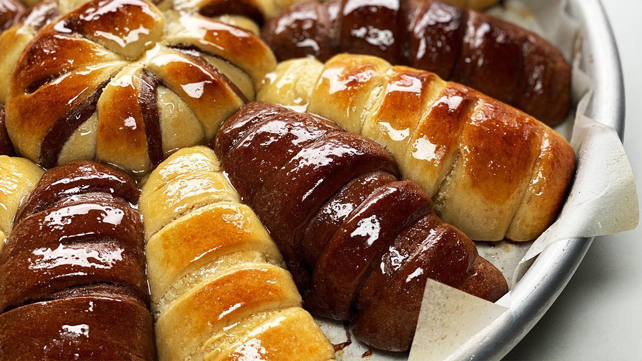 9- مدّي كل كرة على شكل طولي، ادهني القليل من الحشوة على الوجه، قطّعي الاطراف طولياً ثمّ لفّيها على شكل رول.