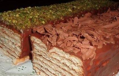 - بعد ما تنتهي من كل طبقات البسكويت صبي باقي المقدار من الشيكولاتة على الطبقات السابقة بحيث تغطي صلصة الشيكولاتة كل الجوانب من جميع الاتجاهات .