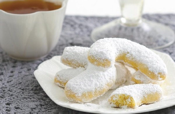 - رشي يديك بالقليل من اليدين، وشكلي كرات من العجين بحجم حبة الجوز، ثم مددي كل كرة لطول 5 سم على شكل هلال، رتبيهم فوق 2 – 3 صينية مفروشة بورق الزبدة واخبزيهم لـ 15 – 20 دقيقة أو حتى يصبح اللون ذهبياً فاتحاً.
