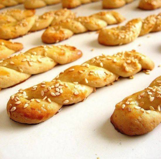 - يرص البسكويت فى صوانى الخَبز، ويدهن بمزيج البيض وينثر عليه السمسم، ويخبز لمدة 12 دقيقة أو حتى يأخذ اللون الذهبى.