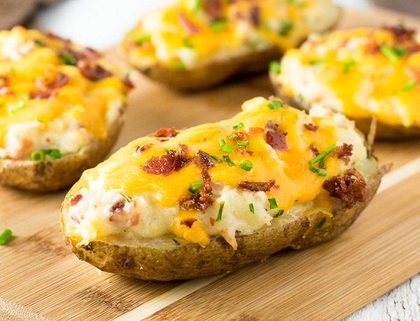 - ندهن حبات البطاطا بالزيت ورشة ملح ونشويها في الفرن على درجة حرارة 200 لمدة نصف ساعة تقريباً .