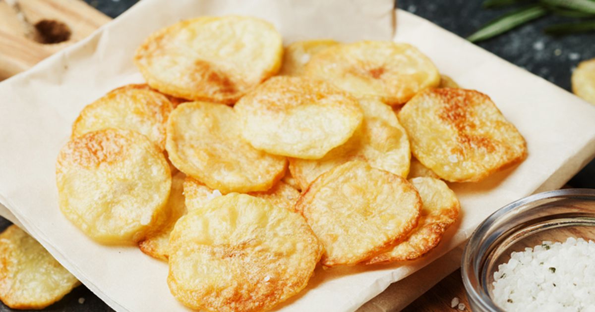 1- قطّعي البطاطس إلى شرائح رفيعة جداً بواسطة محضر الطعام أو السكين. 2- ضعي شرائح البطاطس في وعاء. أغمريها بالماء ثمّ أضيفي الملح، الخلّ وعصير الليمون الحامض. أتركيها منقوعة لساعتين ثمّ صفّيها وجفّفيها بالكامل. 3- سخّني الزيت في قدر على نار متوسطة. أضيفي شرائح البطاطس واقليها حتى تصبح ذهبية اللون. 4- صفّي البطاطس من الزيت وضعيها في طبق مبطن بمحارم ورقية. نكّهي بالبصل البودرة. 5- قدّمي الشيبس. ألف صحة!