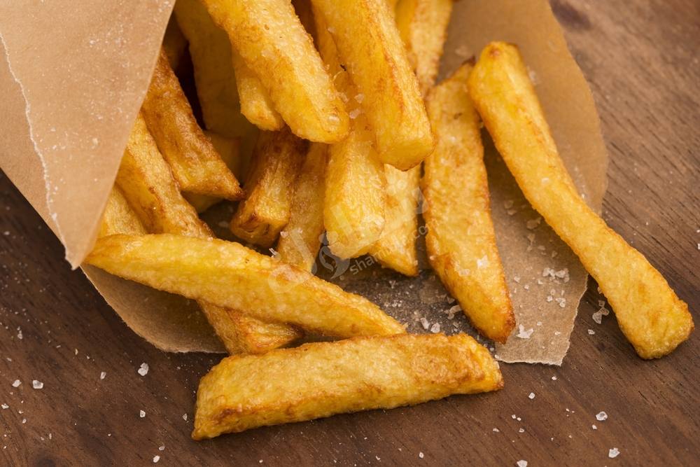 - اخرجي البطاطس و ضعيها في الزيت الساخن و اتركيها حتى تكتسب اللون الذهبي المقرمش .