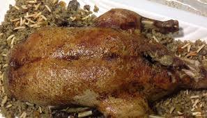 ١٠. نضع البطة بالقدر ثم نتركها على نار متوسطة لمدة ساعة تقريبا حتى تستوي بدون ان نغطيها حتى لا يخرج منها الفريك.
