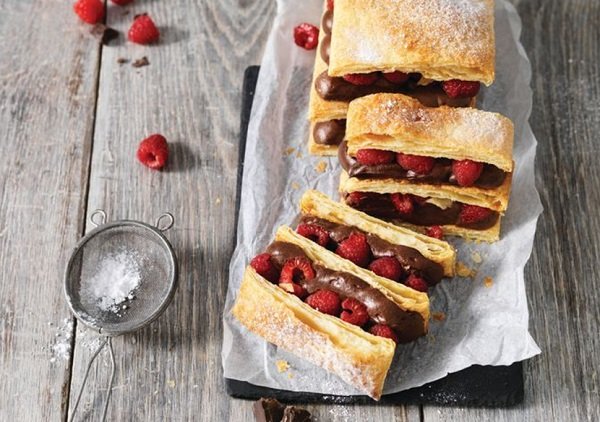 بف باستري بالنوتيلا ، وصفة بسيطة لكنها مذهلة، تتكون من طبقات من رقائق العجين مع موس من الشوكولاتة وطبقة فوقها من التوت. مناسبة جدا للحفلات، لذيذة وشهية.