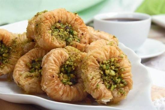 9. يحشى وسط الأعشاش بالفستق الحلبي المطحون أو الصنوبر.