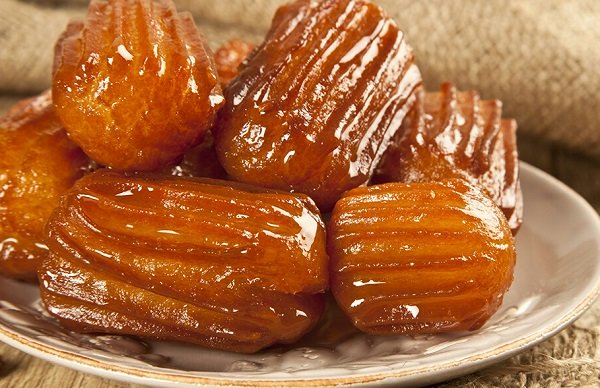 - نغمس أصابع بلح الشام بالقطر البارد وهي ساخنة ثم نضعها فوق مصفاة للتخلص من القطر الزائد .