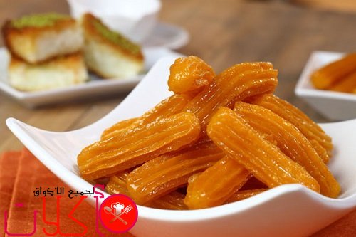 6-تخرج اصابع بلح الشام من الزيت وتوضع في القطر ثم تقدم.
