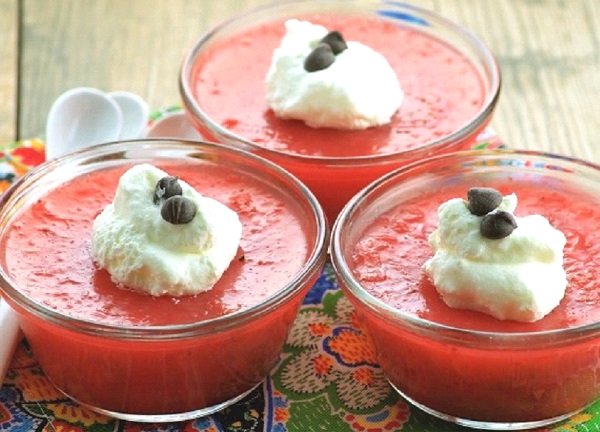 - نسكب الخليط في صحون زجاجية، ونبردها عدة ساعات حتى تتماسك، ونقدمها مع القشدة والشكولاته .