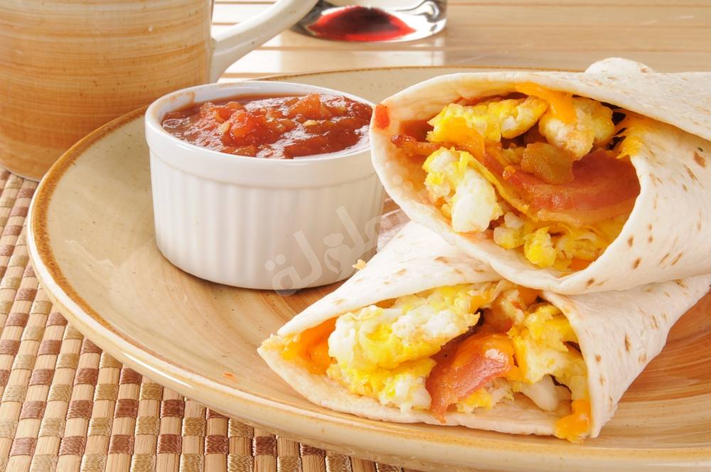8. ضعي شريحة بيف بيكون فوق كل شريحة تورتيللا او فتتيها حسب الرغبة.