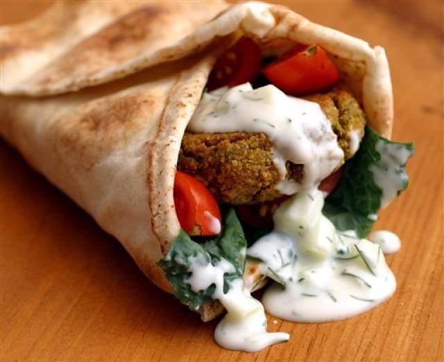 - قدمي بوريتو الطعمية بالمايونيز مع الباذنجان المخلل كوجبة إفطار.