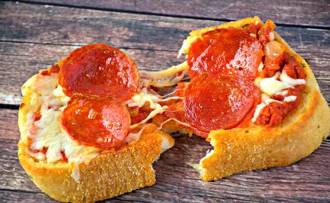 - تدهن شرائح التوست بصلصة البيتزا، ويوضع فوقها الجبنة الموزاريلا، ويرش عليها الزعتر.