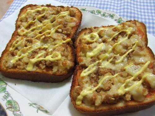 - ضعي مزيج التونة على شرائح التوست بالتساوي.