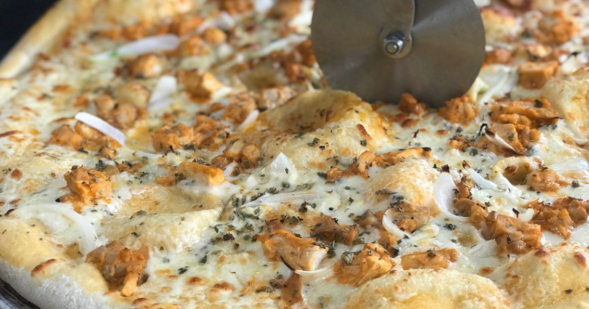 11 – وزعي صلصة الباربكيو على وجه البيتزا و قدميها مباشرةً على سفرتك.