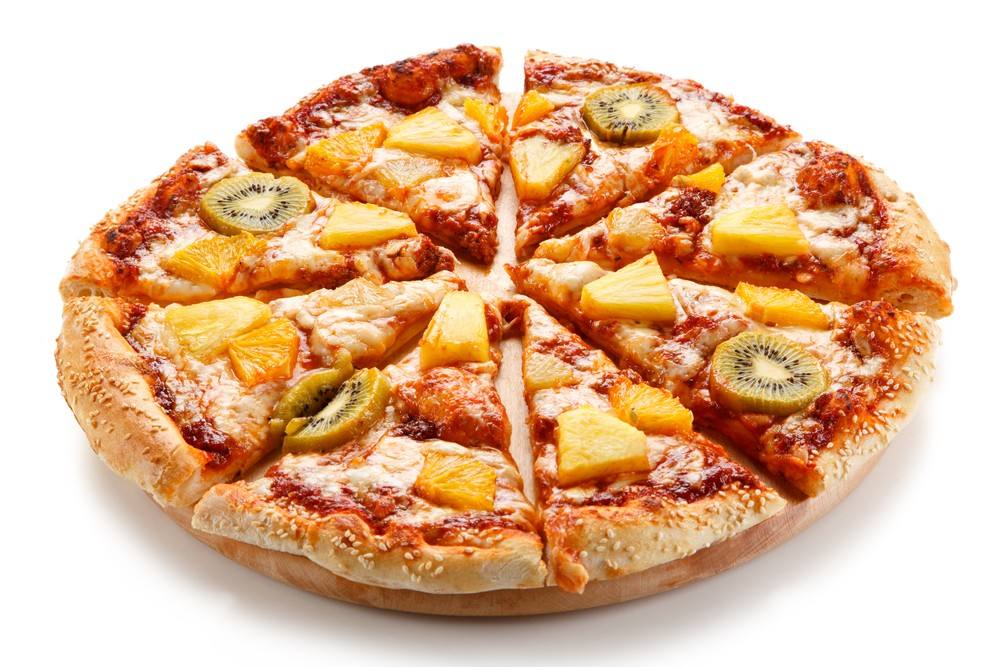 - توضع شرائح الكيوي وقطع الأناناس، ويضغط عليها بباطن اليد برفق لتتماسك.