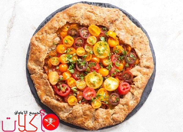- نحضر العجينة كقرص دائري 15 انش، ونرش البارميزان والطماطم والريحان مع ترك 4 انش بالحواف فارغة .
